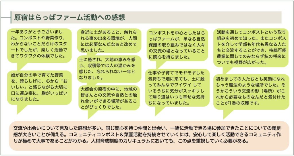 下記は、原宿はらっぱファームの活動に参加した方へのアンケート(一部)です。